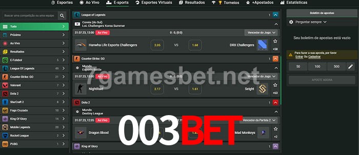 A aposta 003Bet oferece aos jogadores a experiência mais conveniente de apostas em eSports!